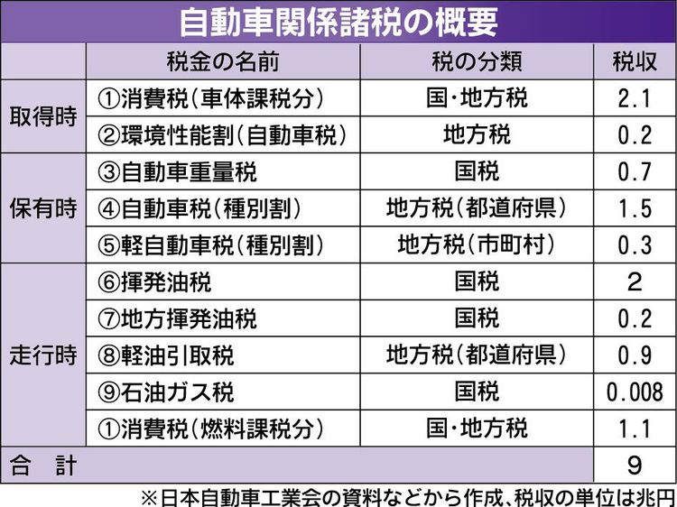 保有時の税に関しては、経産省が、パワートレインを問わず重量ベースに一本化し、環境性能に応じて増減する新たな枠組みを提案している。