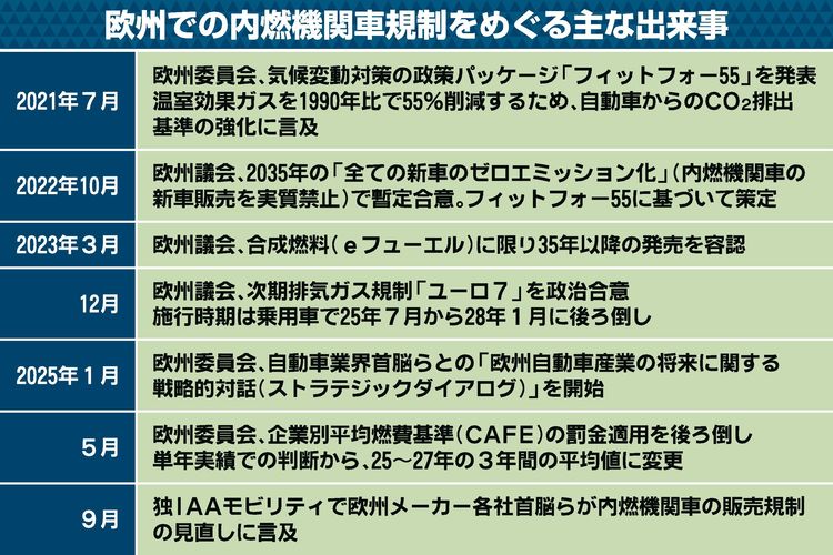 「欧州委員会に内燃機関車の禁止を撤廃するよう働きかけている」―。ドイツのフリードリヒ・メルツ首相は9月下旬、ICE車販売規制の見直しに向けて動くと表明した。同月開かれた「IAAモビリティ2025」ではフォルクスワーゲン(VW)グループやメルセデス・ベンツ・グループなどメーカー首脳も相次ぎ規制への反対意見を述べた。