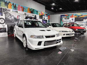 三菱自動車の「ランサーエボリューション」は、1996年から4年連続で世界ラリー選手権(WRC)ドライバーズチャンピオンを獲得し、欧州でもファンが多い。「日本のモータースポーツの強さを象徴する1台」(岩澤氏)という。隣にはライバルとして共に戦ったスバルの「インプレッサ WRX」が並ぶ。
