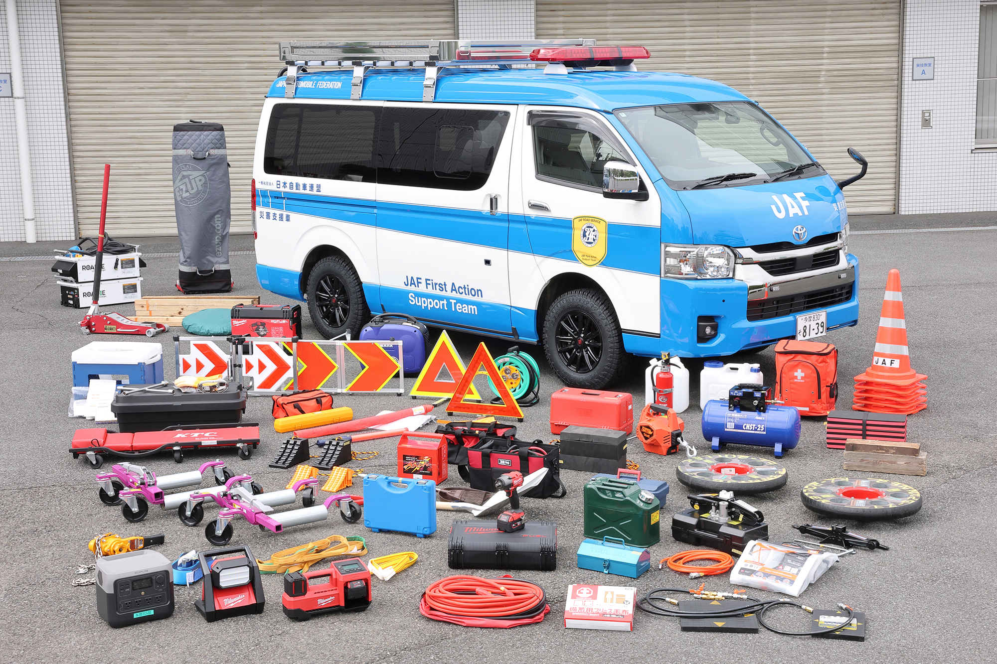 JAF-FAST専用の災害支援車をJAFとして初めて導入した。発電機など緊急用資機材、食料など生活必需品、携帯電波圏外でも隊員間で通信できる情報伝達装置などを搭載。現地のライフラインが遮断された環境下でも、継続的な活動を行うことができる。