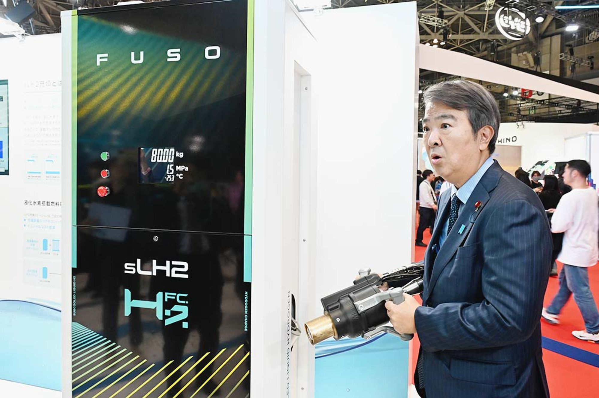 ジャパンモビリティショーでは石原宏高環境相もsLH2充填設備を視察した