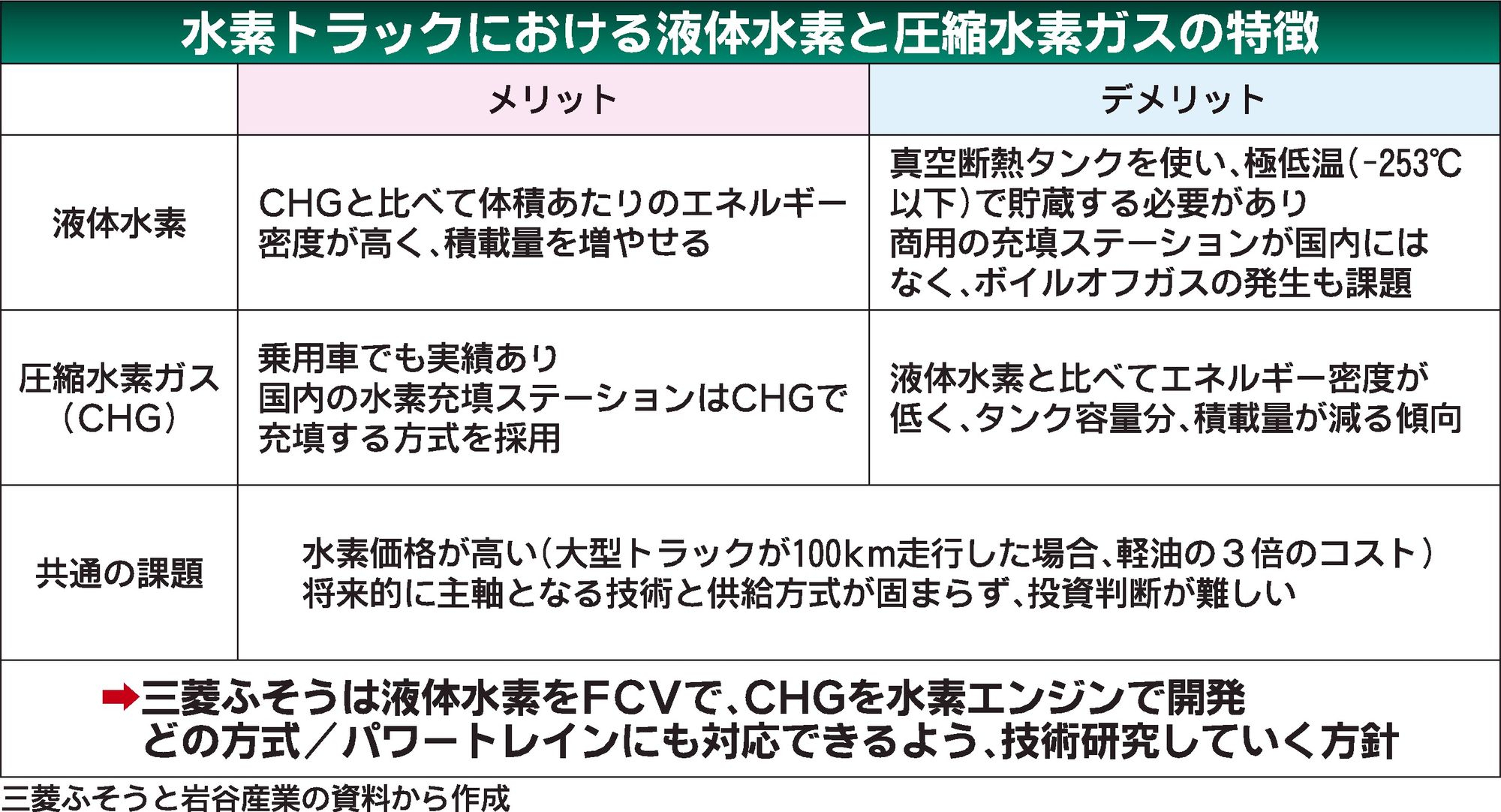 液体水素とsLH2について、三菱ふそうと岩谷産業は関係省庁や日本自動車工業会、水素関連団体などと協議を重ね、理解の醸成を図る考えだ。もっとも三菱ふそうは日野自動車との経営統合を控えており、今後の技術開発の方向性は未知数と言える。