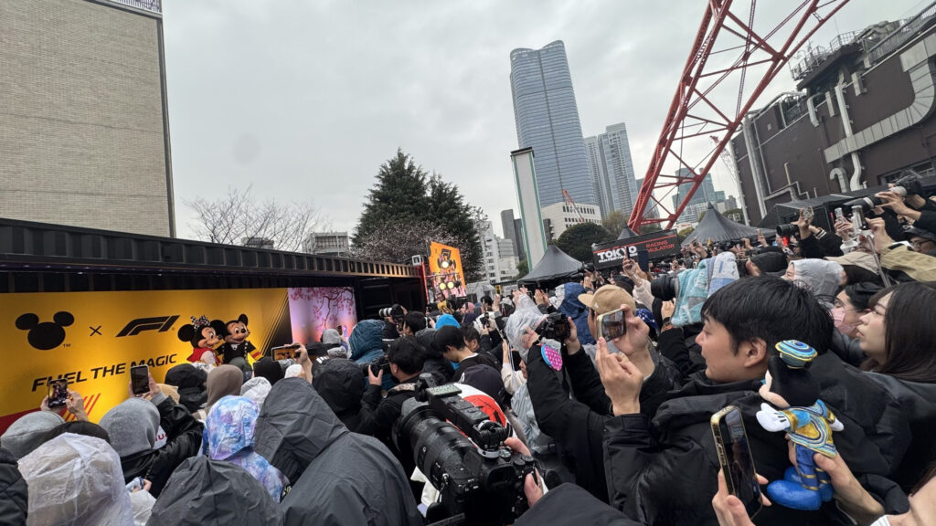 東京タワーと隣接するスターライズタワーを会場に開いたイベントでは、F1とディズニーによるコラボレーションブースやステージが設けられ、大勢の若者や家族連れでにぎわった。ステージではF1をイメージした特別衣装のミッキーマウスとミニーマウスが登場し注目を集めた。角田裕毅選手や佐藤琢磨選手によるトークステージも実施し、日本グランプリへの思いなどを語った。